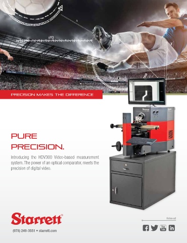 Precision makes the Difference Pure Precision. Introducing the HDV300 Video-based measurement system. The power of an optical comparator, meets the precision of digital video. Follow us! (978) 249-3551 • starrett.com