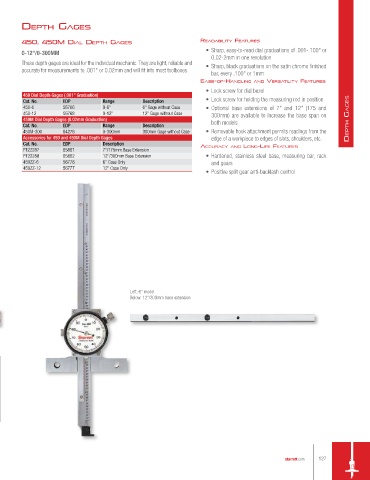 These depth gages are ideal for the individual mechanic. They are light, reliable and • Sharp, black graduations on the satin chrome finished