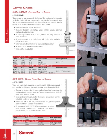 Depth GaGes • All English graduations read to .001", with the bar being graduated in