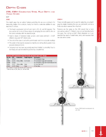 236 and 236H Combination Steel Rule Depth and Angle Gages (0-6" Range)