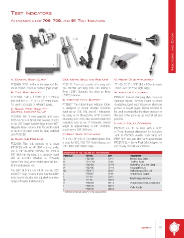 A. dovetAIl body clAMp dM. MetrIc snuG And rod unIt G. HeIGHt GAGe AttAcHMent