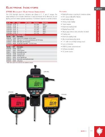 The 2700 Backlight Electronic Indicators are offered in 1", 2" and 4" ranges. The • Backlight relates a reading to tolerance values