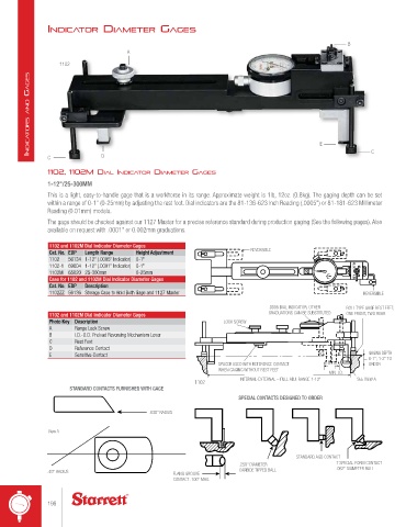 1102 and 1102M Dial Indicator Diameter Gages GRADUATIONS CAN BE SUBSTITUTED ONE FRONT, TWO REAR