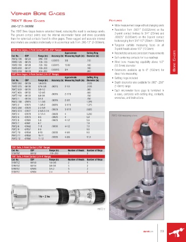 than the spherical contacts found in other gages. These rugged and accurate internal .00025" (0.005mm) on the 3-point contact