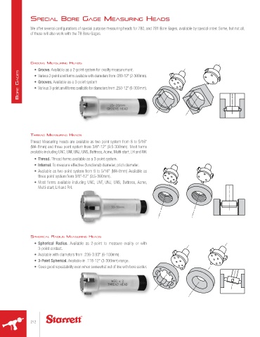 We offer several configurations of special purpose measuring heads for 780, and 781 Bore Gages, available by special order. Some, but not all,