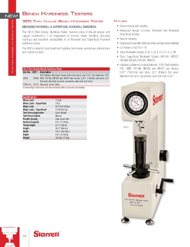 New! 3815 tWIn AnAloG bencH HArdness tester feAtures