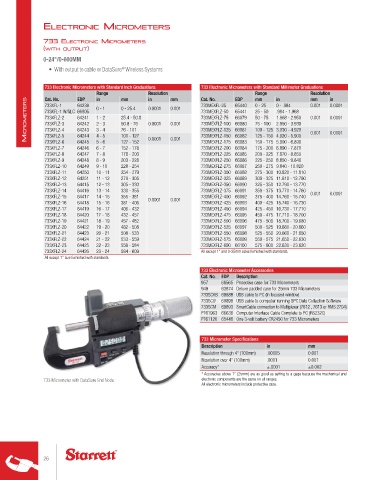 733 Electronic Micrometers with Standard Inch Graduations 733 Electronic Micrometers with Standard Millimeter Graduations