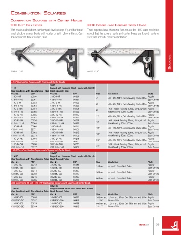 With reversible lock bolts, scriber, spirit level (except 4"), and hardened These squares have the same features as the 11HC cast iron heads