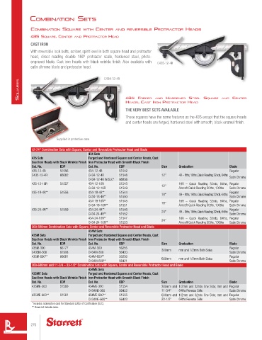 12-24" Combination Sets with Square, Center and Reversible Protractor Head and Blade