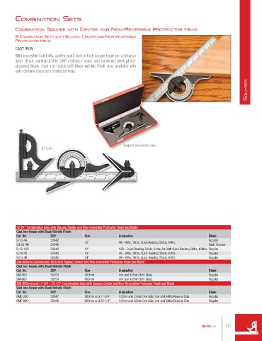 12-24" Combination Sets with Square, Center and Non-reversible Protractor Head and Blade