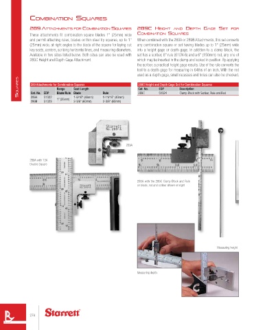 289 AttAcHMents for coMbInAtIon squAres 289c HeIGHt And deptH GAGe set for