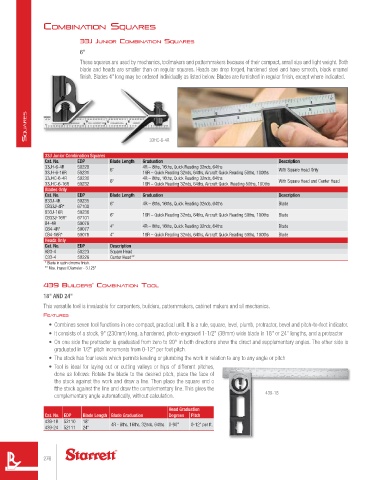 • It consists of a stock, 9" (230mm) long, a hardened, photo-engraved 1-1/2" (38mm) wide blade in 18" or 24" lengths, and a protractor