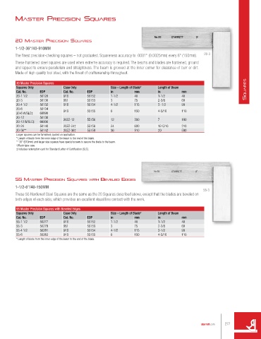 The finest precision-checking squares – not graduated. Squareness accuracy to .0001" (0.0025mm) every 6" (150mm). 20-3