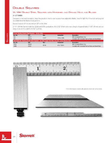 Designed for tool and diemakers, these fine precision double steel squares have adjustable blades, ideal for tight fits. A knurled clamping nut