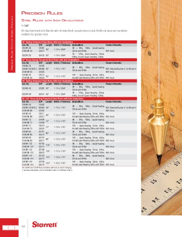 All rules furnished with Starrett satin chrome finish, except where noted. Additional sizes and variations