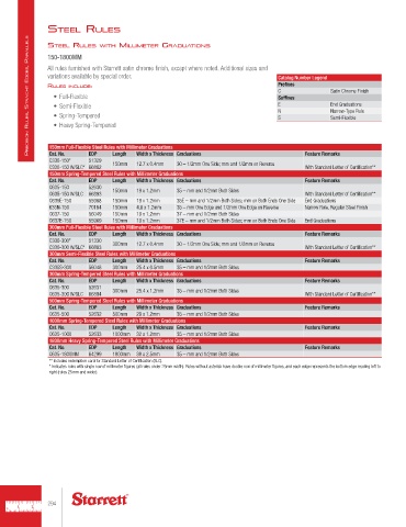 All rules furnished with Starrett satin chrome finish, except where noted. Additional sizes and
