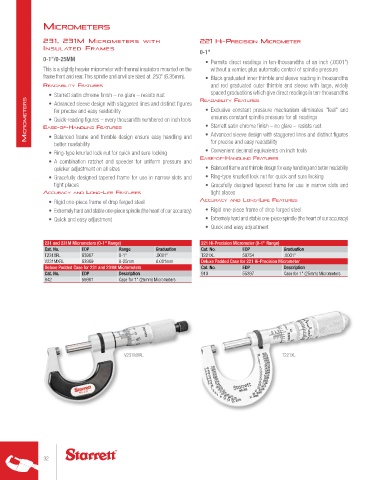 231 and 231M Micrometers (0-1" Range) 221 Hi-Precision Micrometer (0-1" Range)