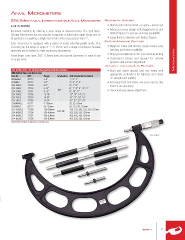 224, 224M, 224.1, 24.1M Interchangeable Anvil Micrometers • Rigid and stable special cast iron frame with