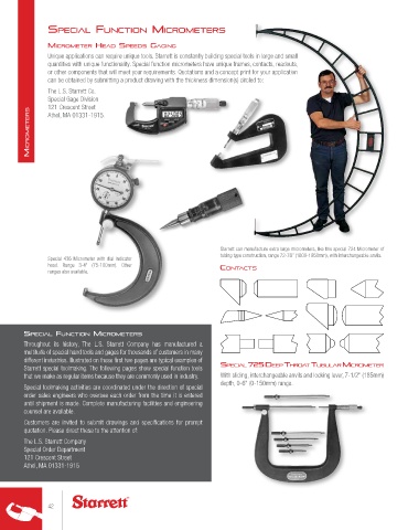 quantities with unique functionality. Special function micrometers have unique frames, contacts, readouts,