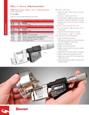 MicroMeters 790M Electronic Multi-Anvil Micrometers with Standard Millimeter Graduations on Shell and • One 3-volt battery furnished for over a year of