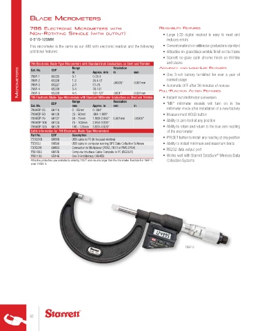 786 Electronic Blade-Type Micrometers with Standard Inch Graduations on Shell and Thimble AccurAcy And lonG-lIfe feAtures