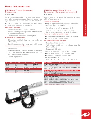210 and 210M Screw Thread Comparator Micrometers (0-7/8" Range) 760 and 760M Electronic Screw Thread Comparator Micrometer