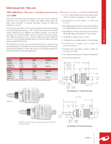 The 468 Micrometer heads are exactly the same as the 465, except that they • Furnished with a speeder (not a ratchet) for