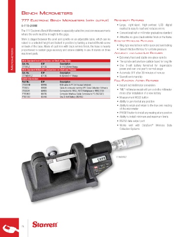 777 electronIc bencH MIcroMeters (WItH output) reAdAbIlIty feAtures