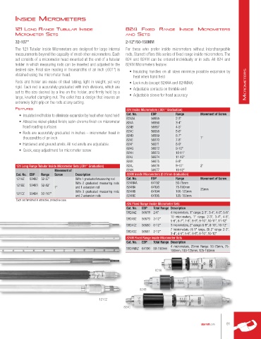 measurements beyond the capacity of most other micrometers. Each rods, Starrett offers this series of fixed range inside micrometers. The