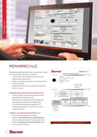 • PowerCalc genera informes con los datos de corte Velocidad de corte Ablande Condición