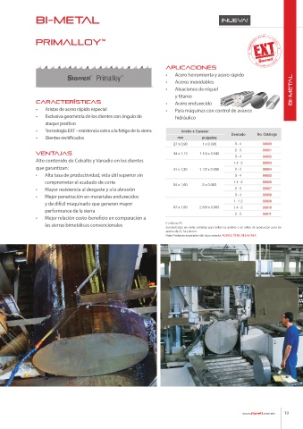 las sierras bimetálicas convencionales P = Diente PS
