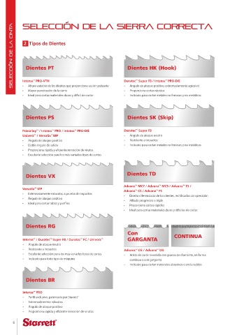 SELECCIÓN DE LA CINT 2 Tipos de Dientes Dientes HK (Hook)